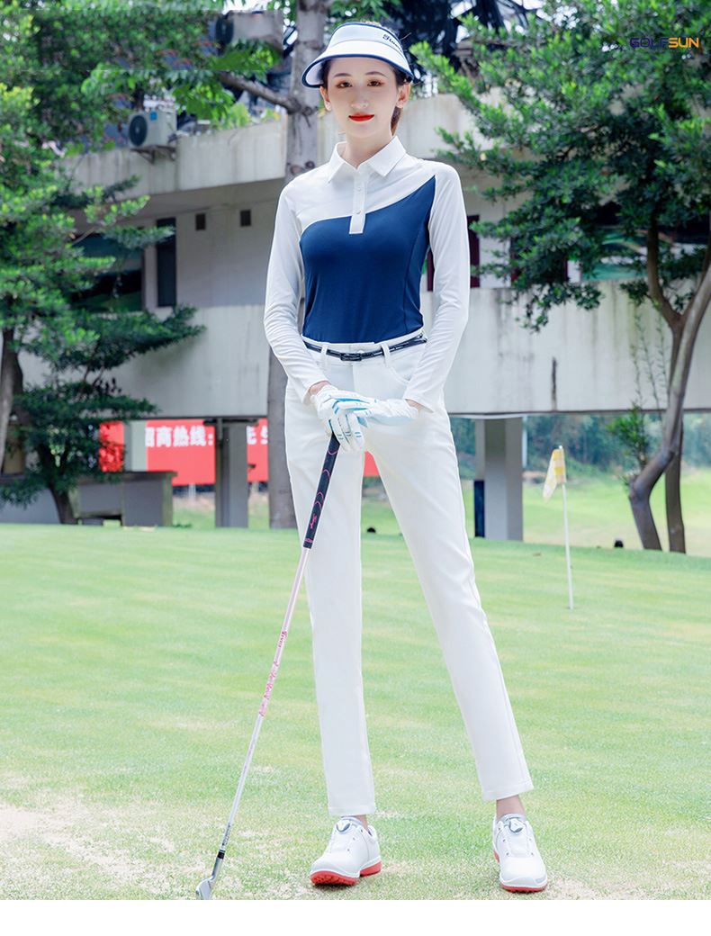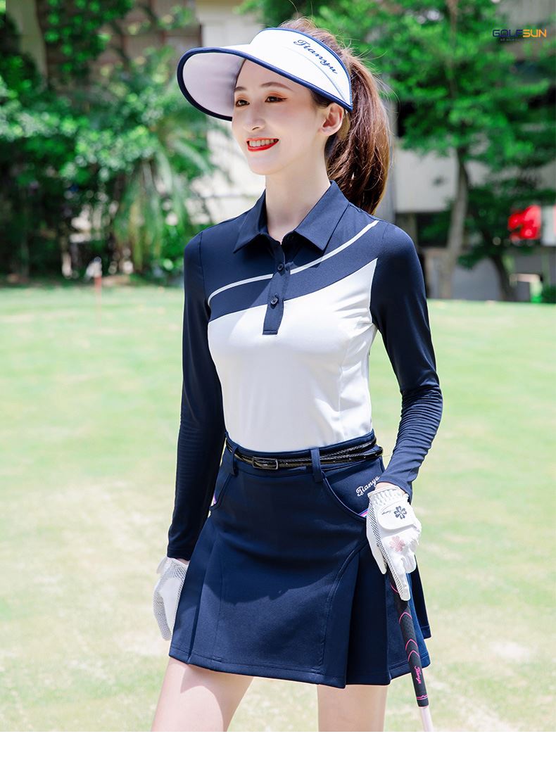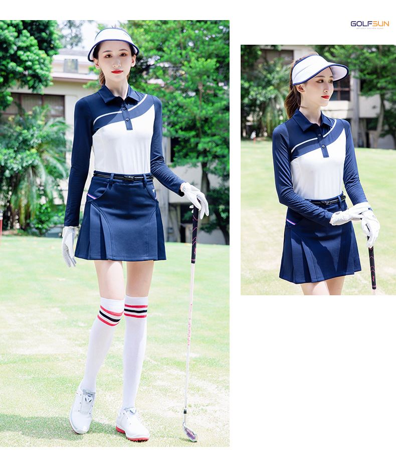 Áo dài tay golf nữ GJ-T208 được làm bằng chất liệu Sợi polyester + spandex. Thiết kế ôm dáng, phong cách Hàn Quốc, tôn vẻ đẹp thể thao nữ tính, chất mặc mát, thanh thoát và xinh đẹp