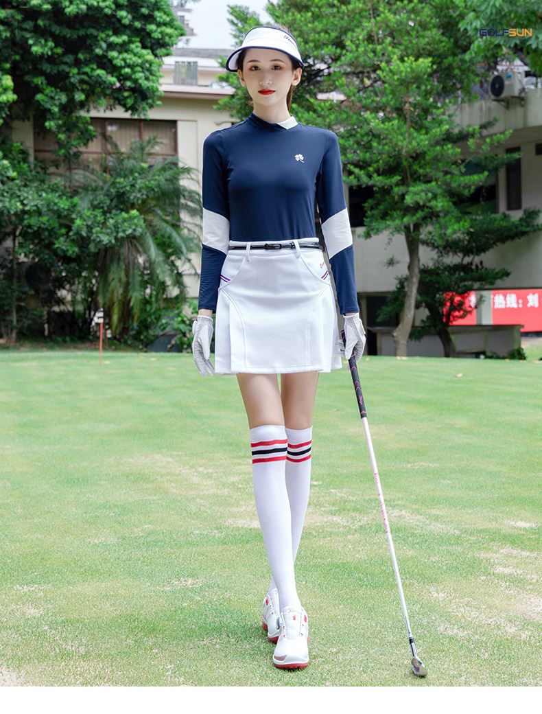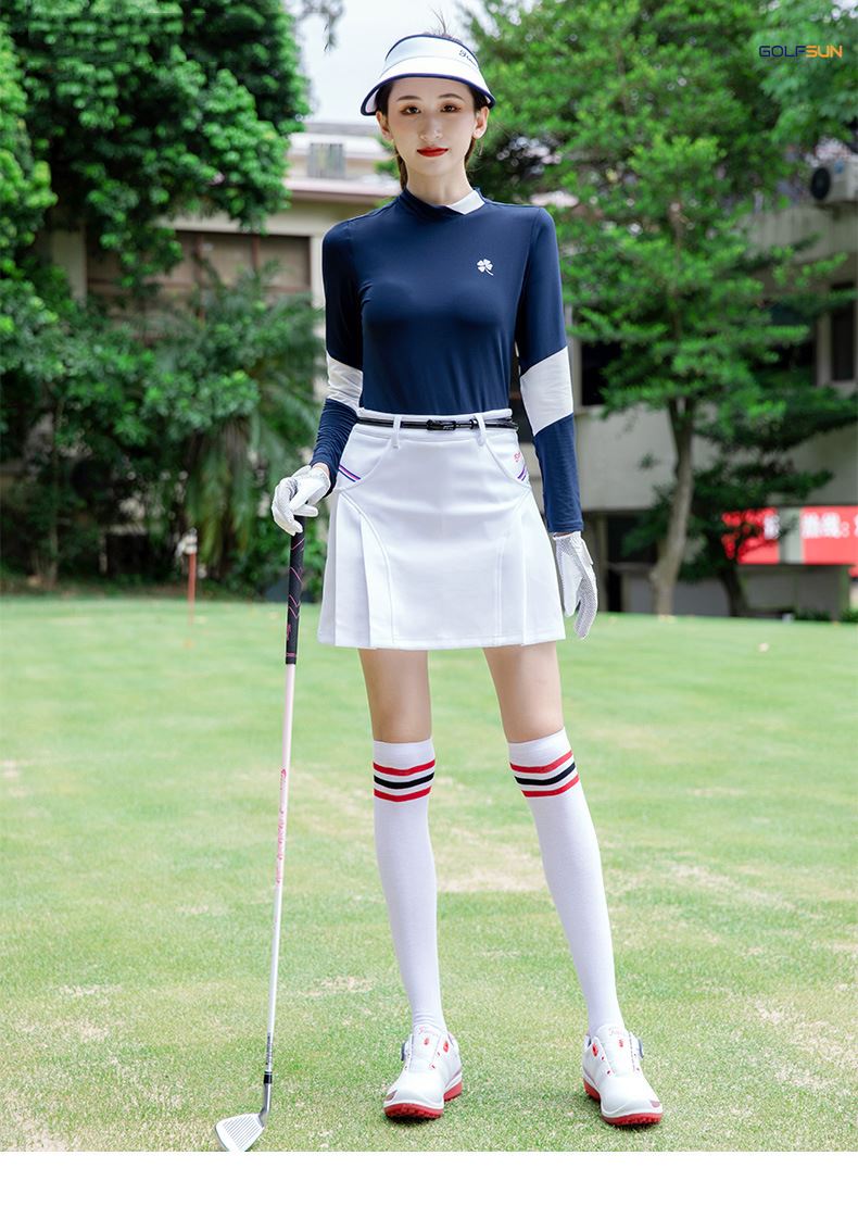 Áo dài tay golf nữ GJ-T222 chính hãng thương hiệu TYGJ với thiết kế phong cách Hàn Quốc ôm dáng, phong cách thể thao, tôn vẻ đẹp trẻ trung. Chất liệu Sợi polyester + spandex mặc mát, thanh thoát và xinh đẹp giúp người mặc sang chảnh trên sân golf.