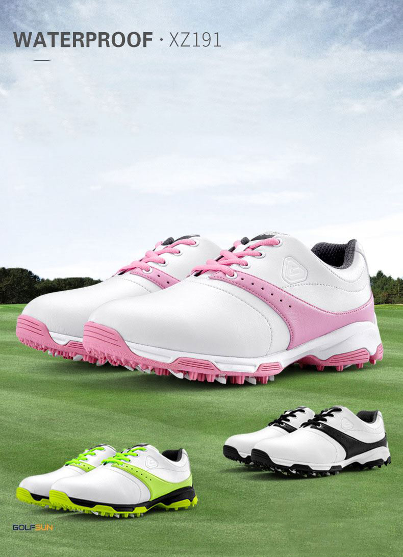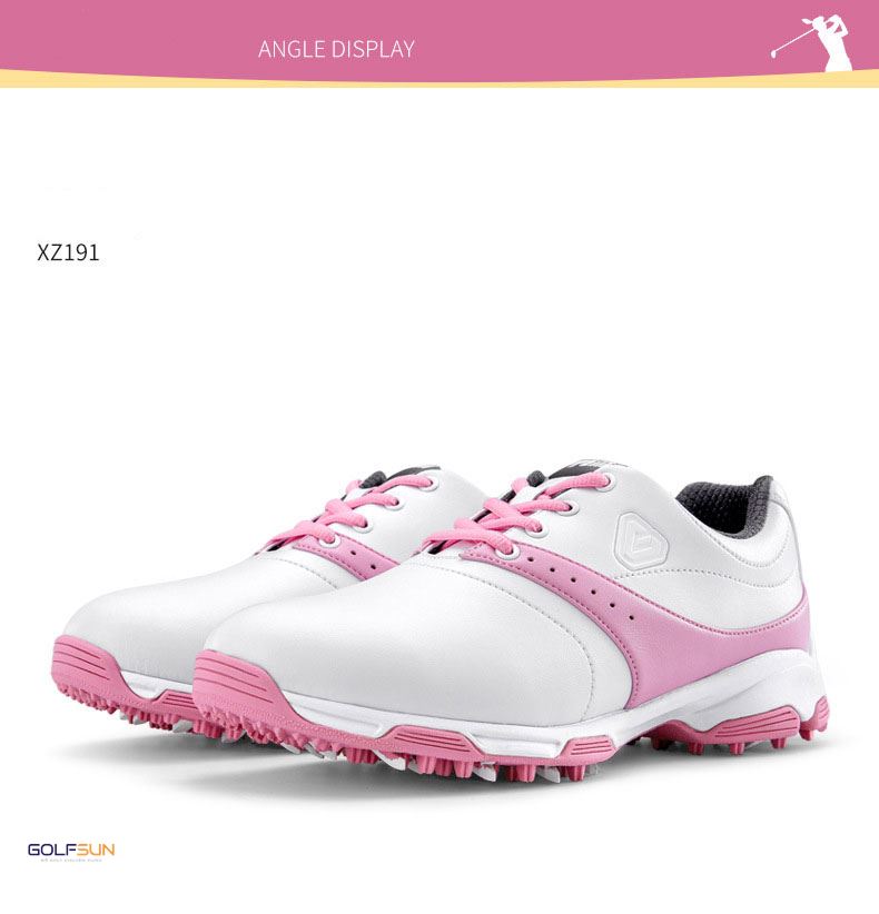 Giày golf nữ PGM-XZ191- Chất liệu da sợi nhỏ, đường nét tinh xảo – Đinh tán chống trượt giúp chơi ổn định hơn. Chống thấm nước mạnh , đế giữa siêu mềm, được thiết kế để tạo sự thoải mái.