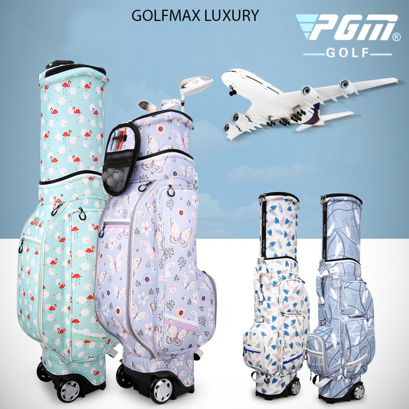 Túi Đựng Gậy Golf Nữ PGM – QB053 được làm bằng chất liệu PU pha lê, kết cấu đẹp, da sáng bóng luôn như mới. Túi đựng được 13-14 cây gậy golf, găng tay golf, điện thoại, chìa khóa, bóng golf, khăn golf…giúp Golfer đựng gậy và hành trang chơi golf gọn gàng và sang trọng.