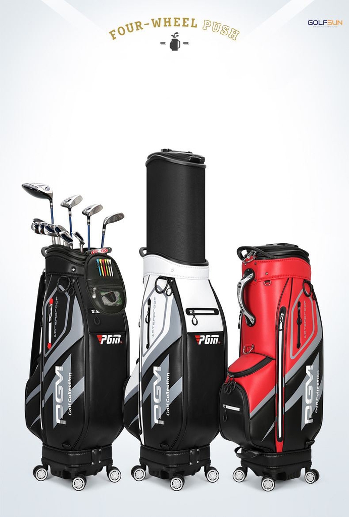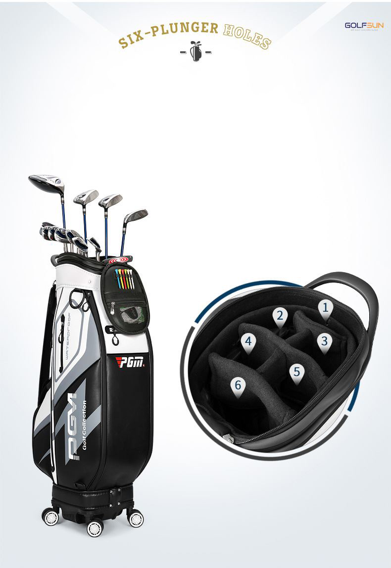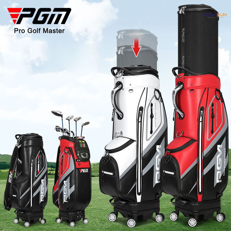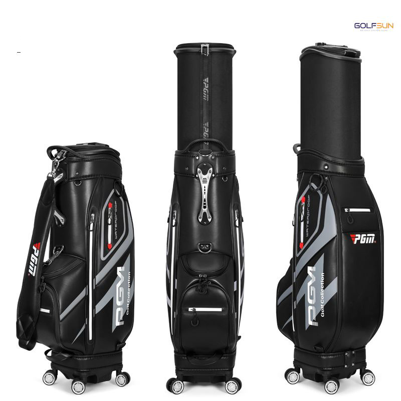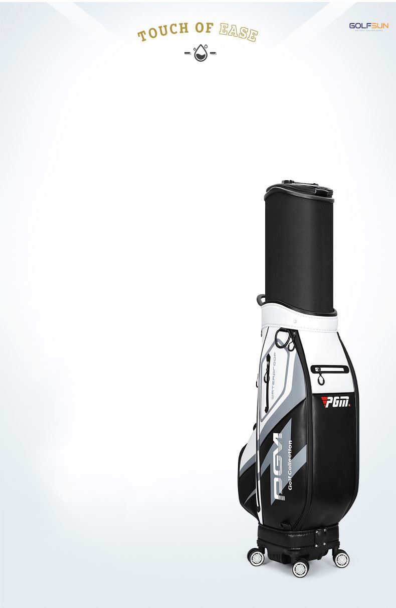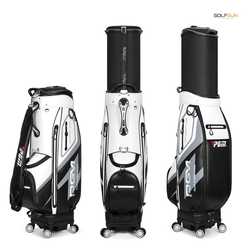 Túi Đựng Gậy Golf PGM-QB099 được làm bằng chất liệu PU pha lê, kết cấu đẹp, da sáng bóng luôn như mới. Túi đựng được 14 cây gậy golf, găng tay golf, điện thoại, chìa khóa, bóng golf, khăn golf…Thiết kế 4 bánh xe, đa dụng, có thể xoay tròn mọi hướng, giúp Golfer đựng gậy và hành trang chơi golf gọn gàng, du lịch thuận tiện và sang trọng,